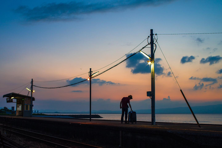 夕焼け空・駅のホーム・電柱の組み合わせ、良いですね。