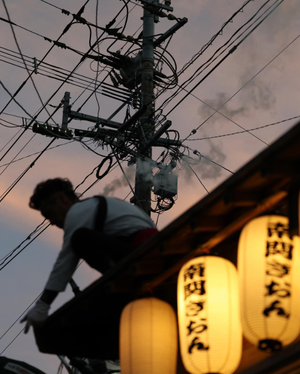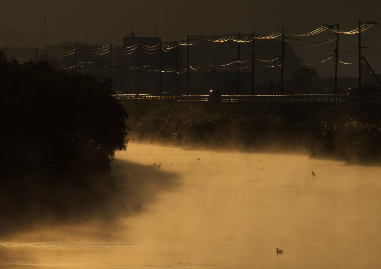日常風景なんだけどこうしてみると幽玄さが強調されていいですね。光る電線が建物のシルエットを背景に映えています。 (講評 田中)