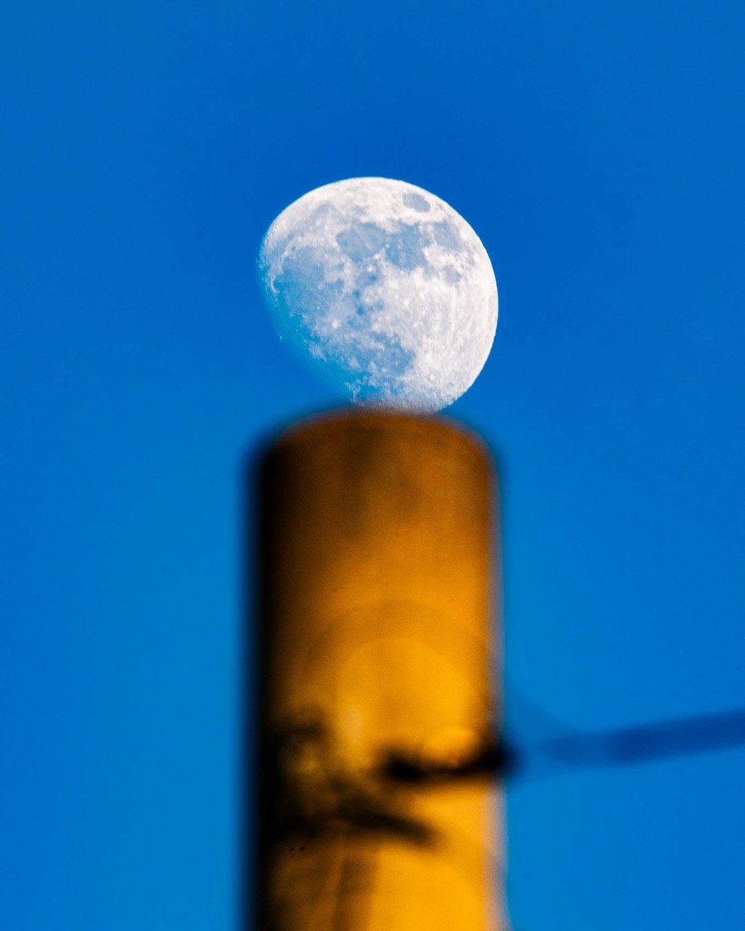 きっとみなさんも、そうだから、自然を象徴する月と一緒に撮影すること、多いと思うのですが、この写真は、月も電柱もどちらもちゃんと主役に見える。まるで竹取物語みたいに、電柱の中に、かぐや姫いるかも!って思いました。