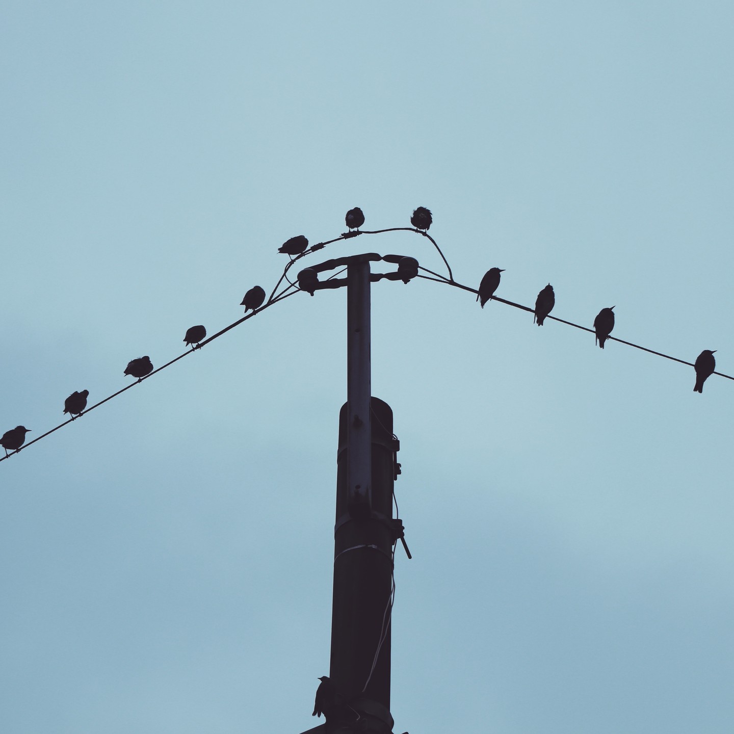 一瞬、このボコボコしたものはなんだろうって思いました。よく見ると、沢山の人で。それに気づいた時、まるで電線の屋根の下に、みんなが寄り添い集まっているようにみえて。