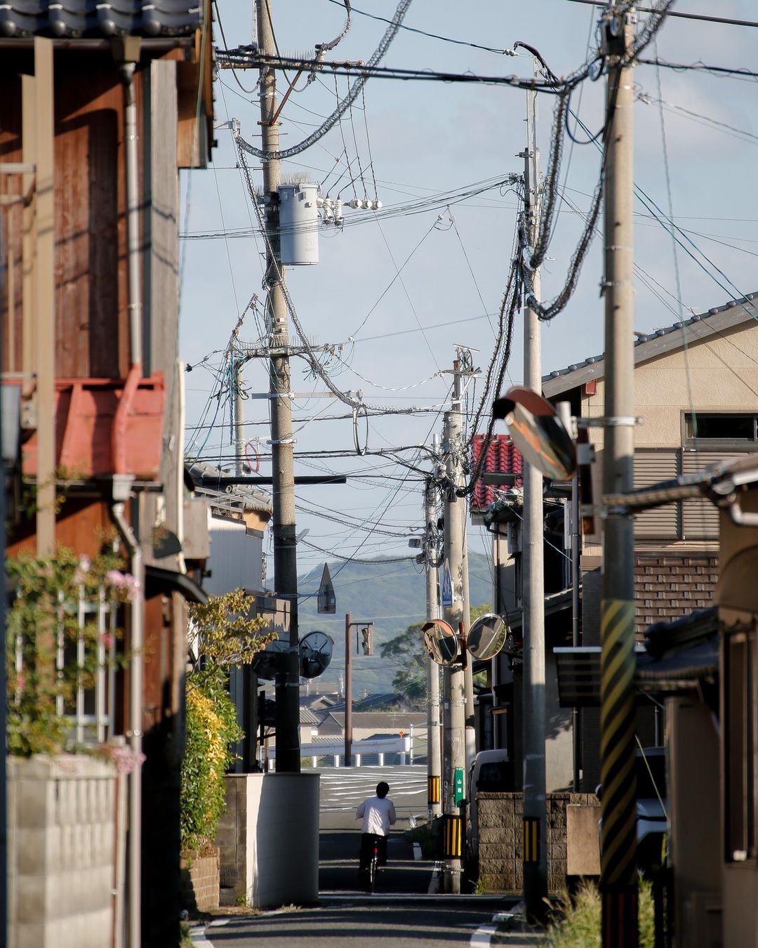 当たり前の風景が、電柱、というひとつに目を向けるだけで違って見える。私は、電線が渡っている風景が、自然や人や生活を繋ぐものに見えました。