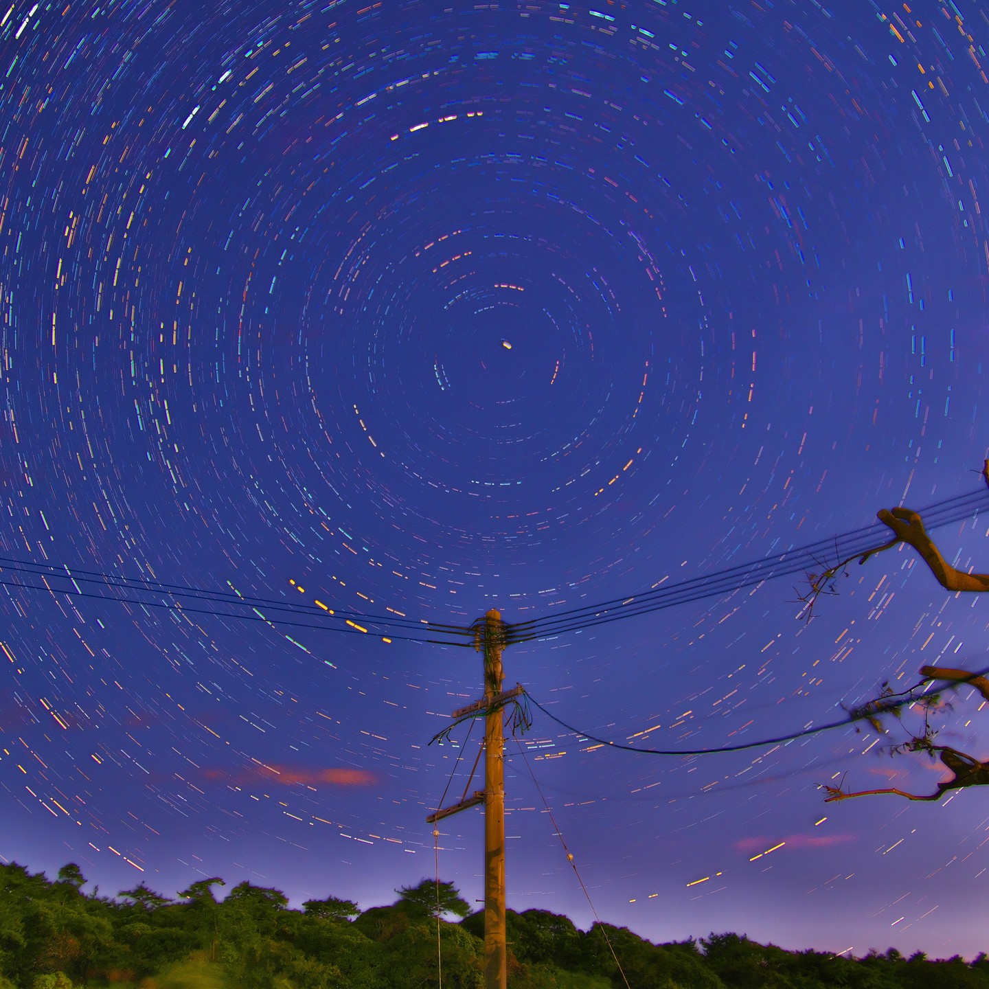 電柱を中心に、星空がまるでアンテナのような、まるーい軌道をスローシャッターでとらえたお写真。タイトルもストーリーを感じられ、良いと思いました。(講評 野中)